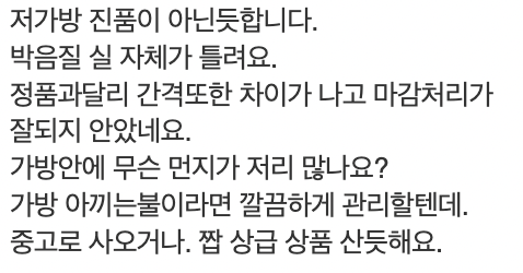 물론 가품인데도, 저러한 배짱으로 요구를 한다면 더더욱 큰 문제가 되겠지요.