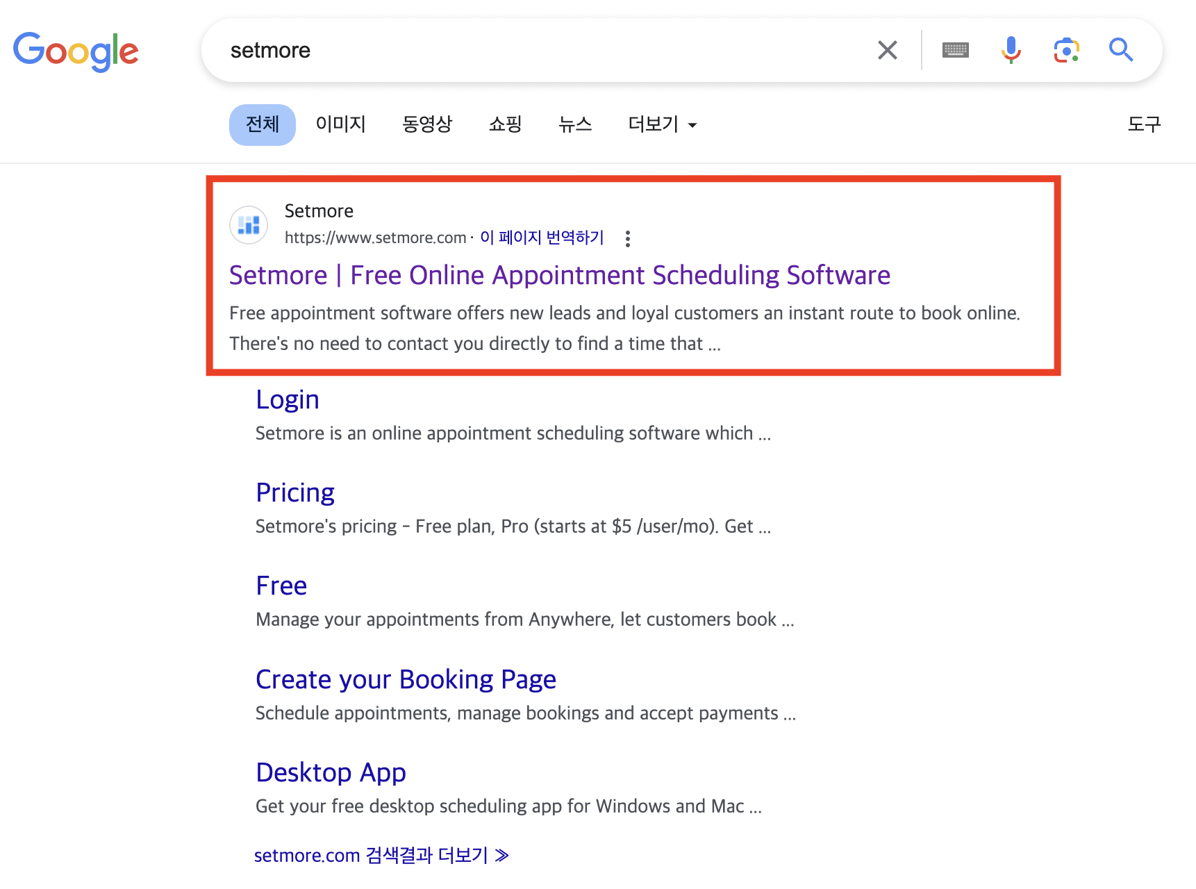 구글에서 setmore 검색하셔서, 첫번째로 나오는 웹사이트를 클릭해주세요