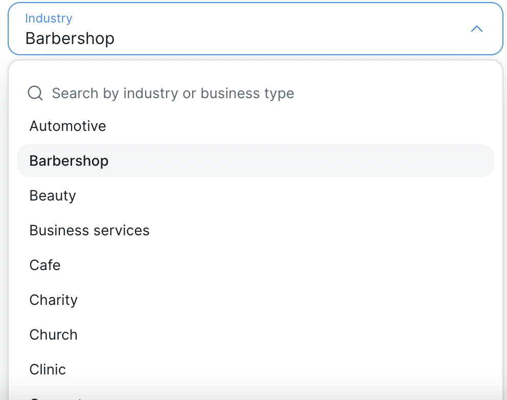 업종은 정말 다양한 리스트가 있더라구요, 원하시는 업종을 선택해주시면 됩니다. 저는 바버샵으로 선택해봤어요
