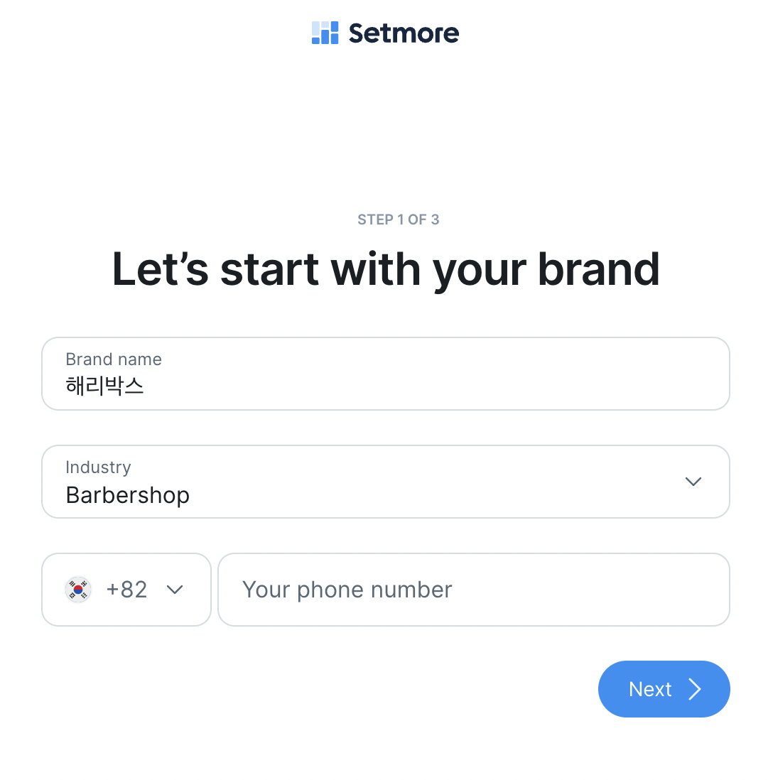 4. 브랜드 이름과, 업종을 선택하고, 연락처를 입력해주세요