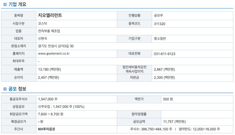 7. 지오엘리먼트 (코스닥, 종목코드:311320)