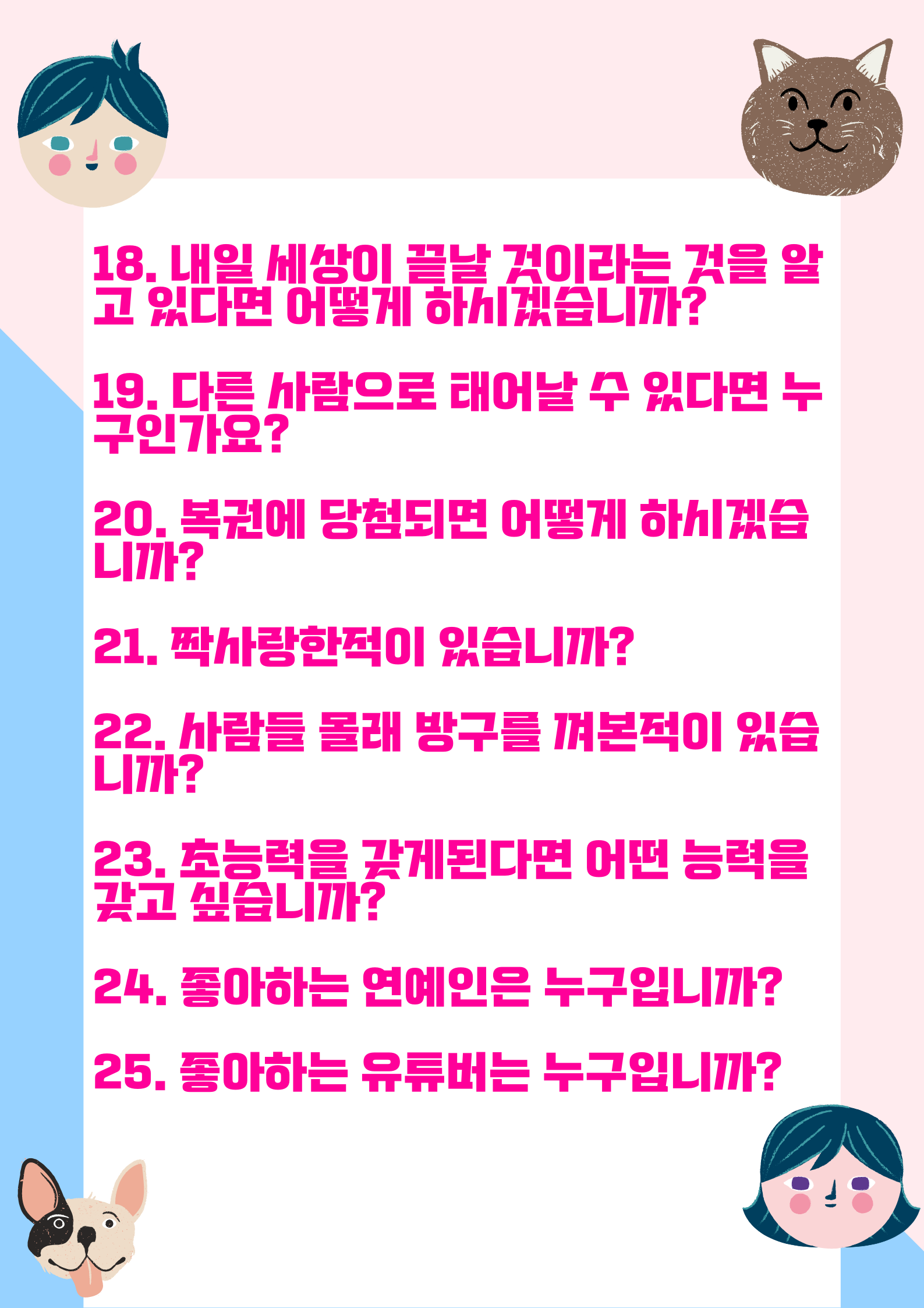 총 25가지로 참신하고 재미있는 주제들고 준비했습니다~