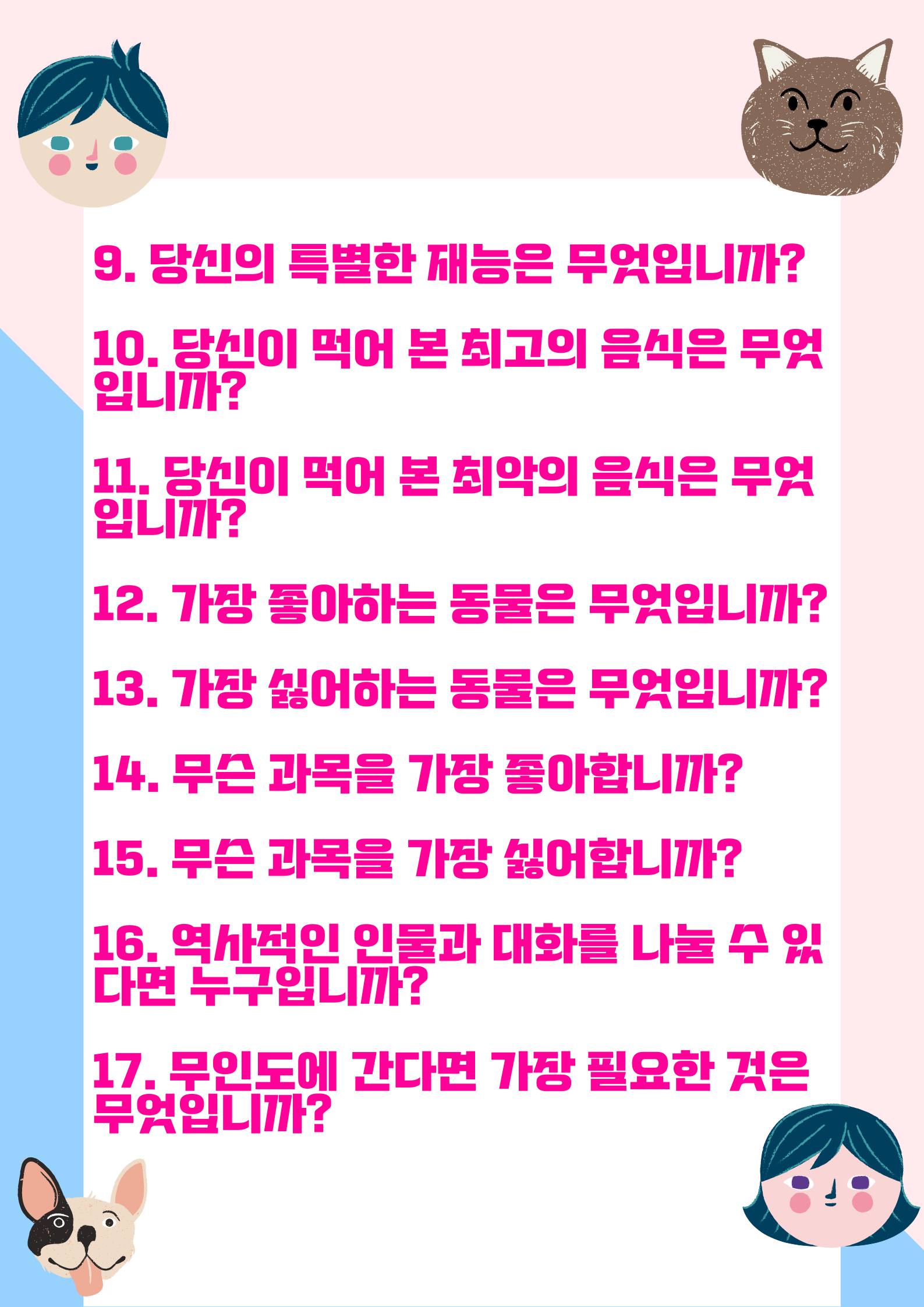 9. 당신의 특별한 재능은 무엇입니까?