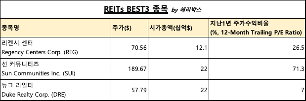다음은 높은 가치, 빠른 성장, 가장 탄력을 받는 상위 3대 리츠 목록이다 :